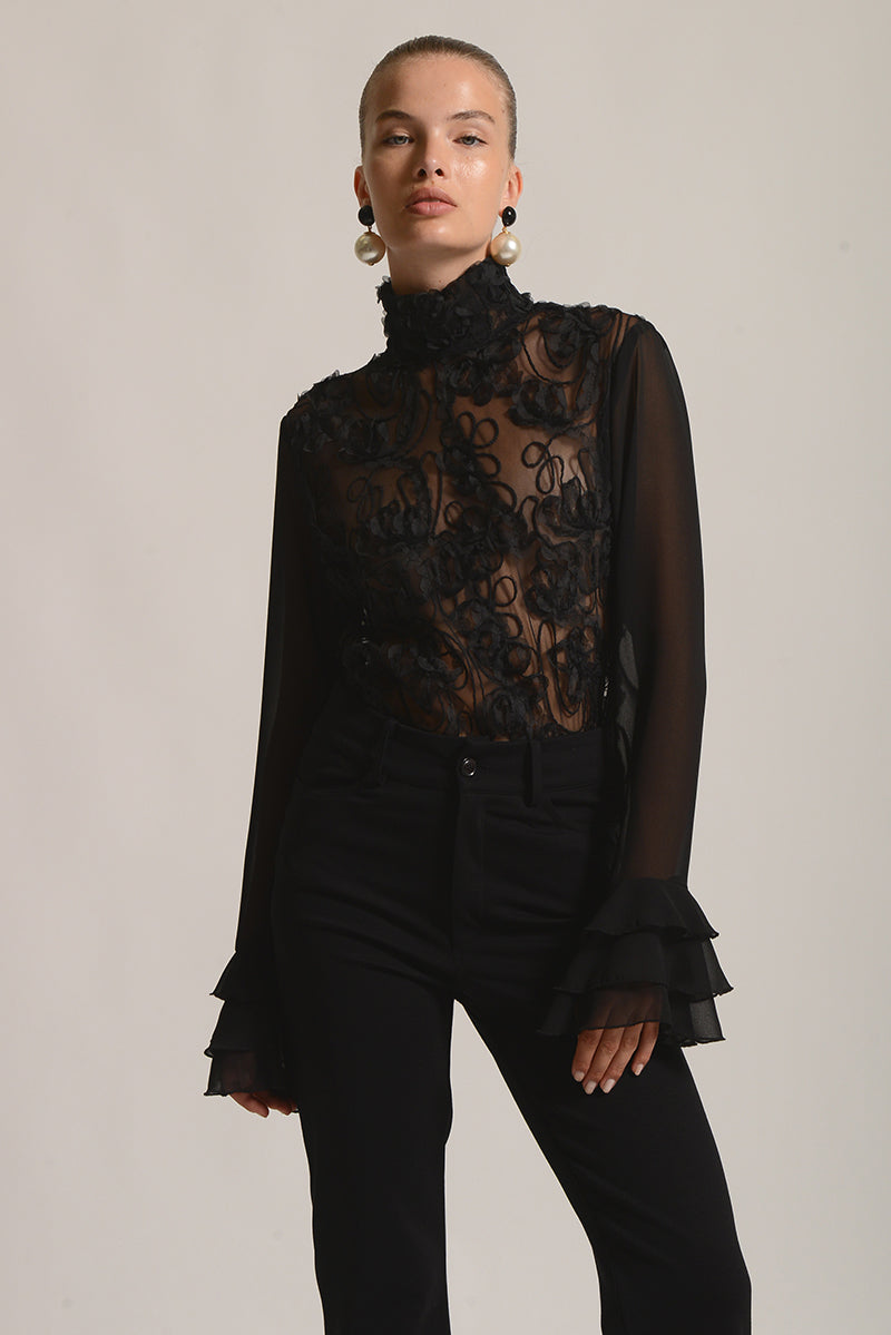 Floral embroidered longsleeve blouse.