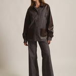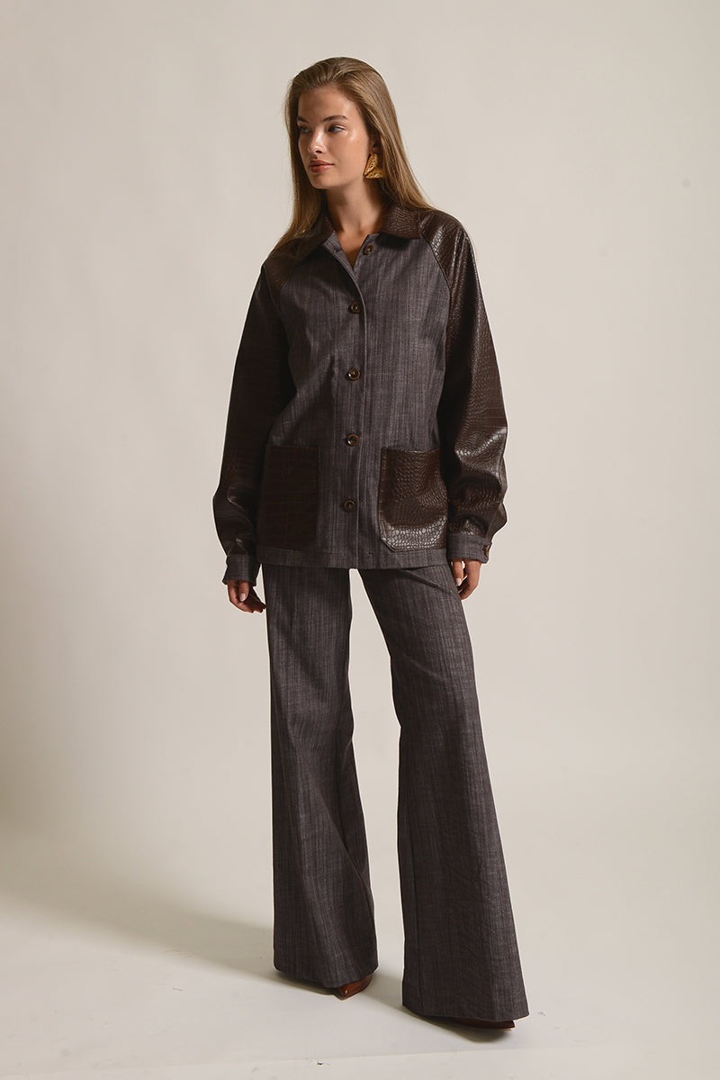 Jean shirt with croco fabric details.