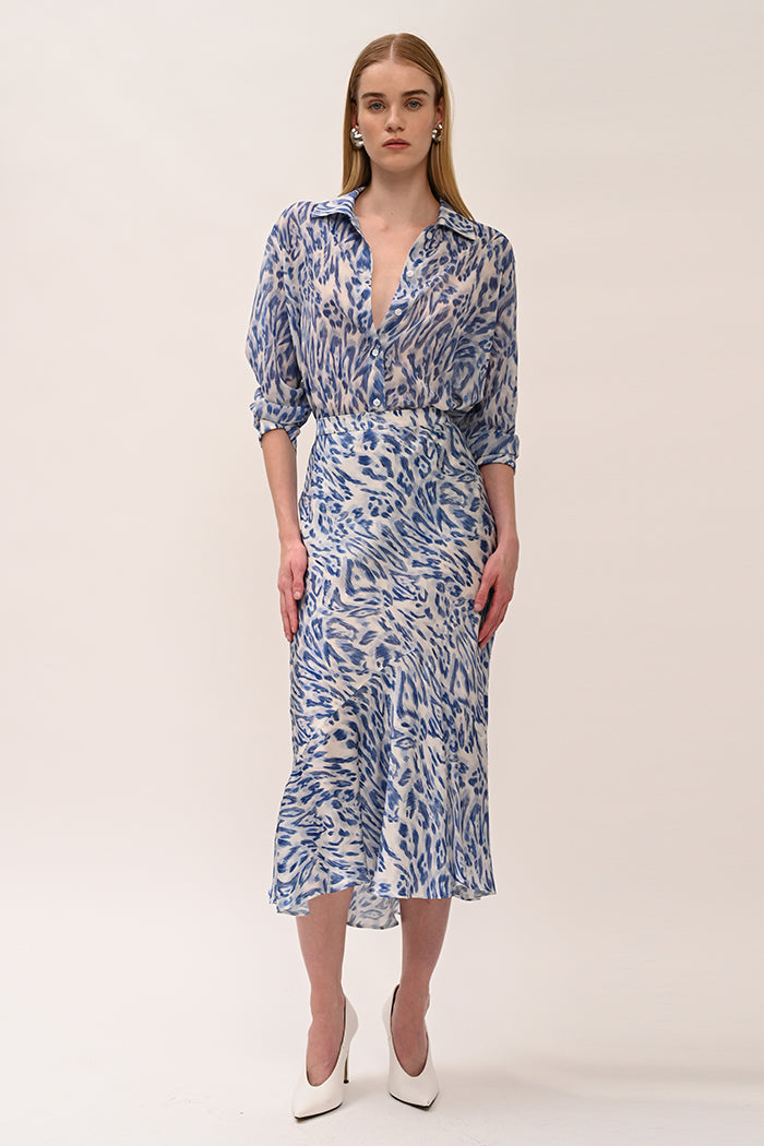 Mousseline midi skirt with animal print.